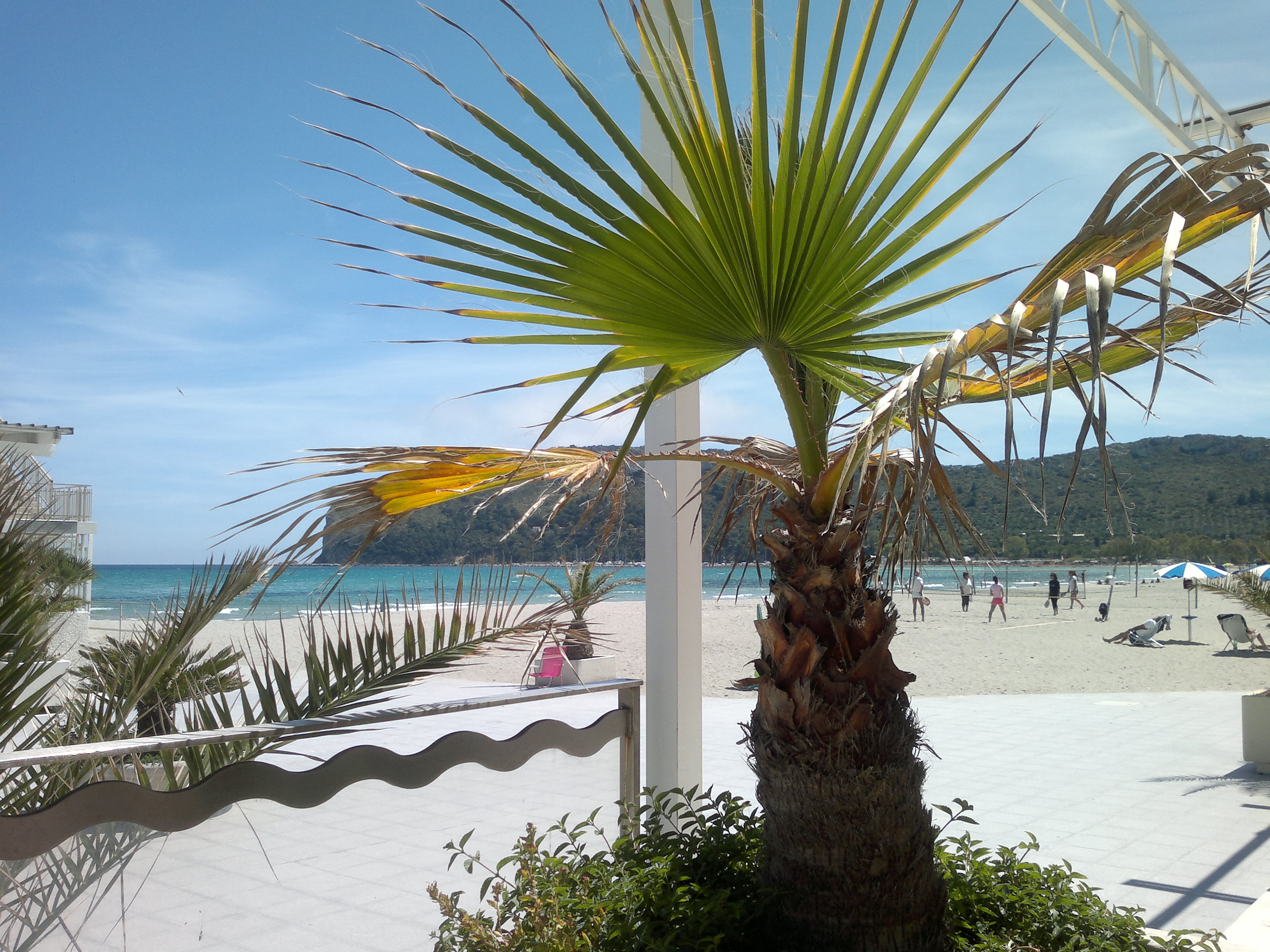 Skats uz Poetto pludmali no Lido kafejnīcas
