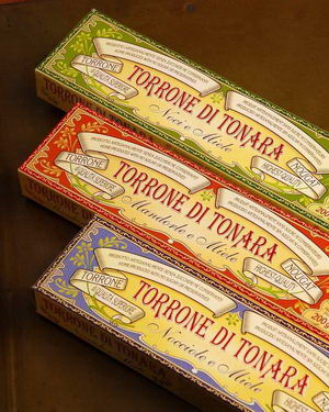 Pieejama: TORRONE ar mandelēm, Torrone ar lazdu riekstiem, Torrone ar valriekstiem un ar mandelēm+mirto. Cena 6 eiro (1 gb).
